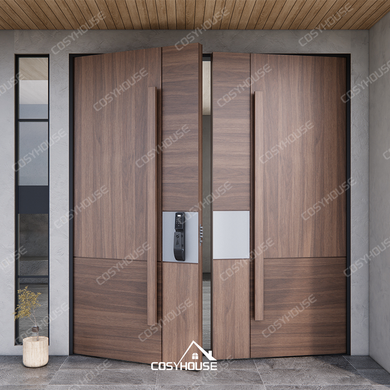 • Double swing wooden entry door design