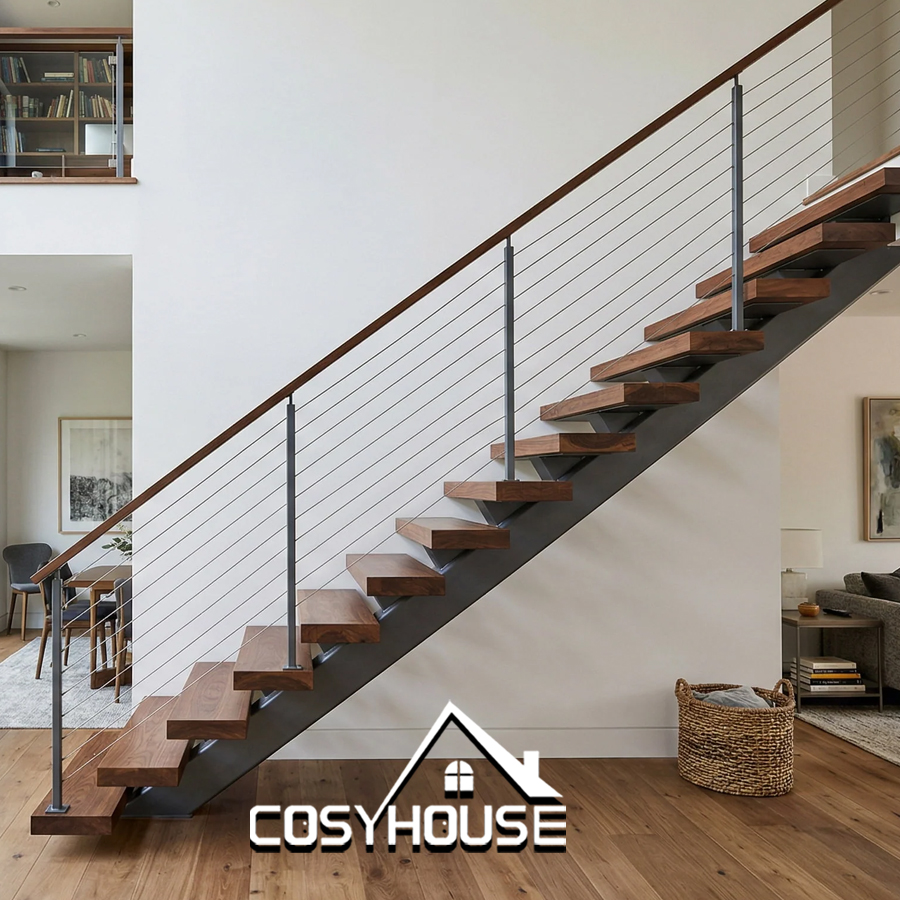This product can be used in custom homes, villas, duplex apartments, townhouses, and interior renovation projects. COSYHOUSE is a manufacturer based in Foshan, China, specializing in custom doors, windows, staircases, and architectural metalwork. We support OEM and ODM production for overseas buyers, contractors, developers, and private label customers. Customization is available for floor height, stair width, tread material, railing type, finish color, and installation requirements.