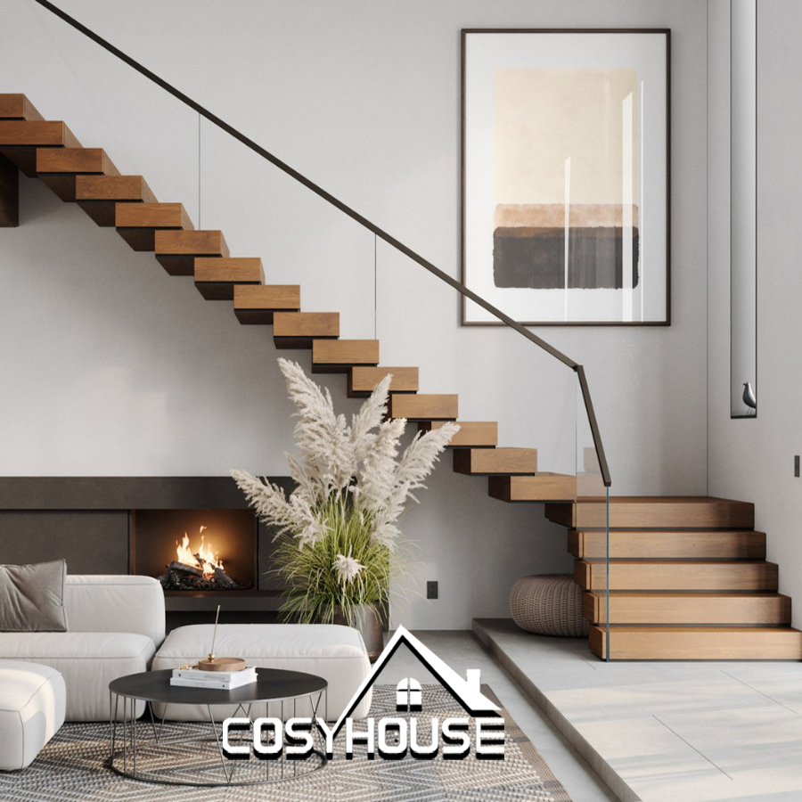 The combination of warm wood and transparent glass gives the staircase a balanced material expression. The wood adds depth and warmth to the space, while the glass railing keeps the structure visually light and helps preserve openness around the stair zone. This design is well suited for buyers who want a staircase that feels premium, modern, and architecturally clean.
